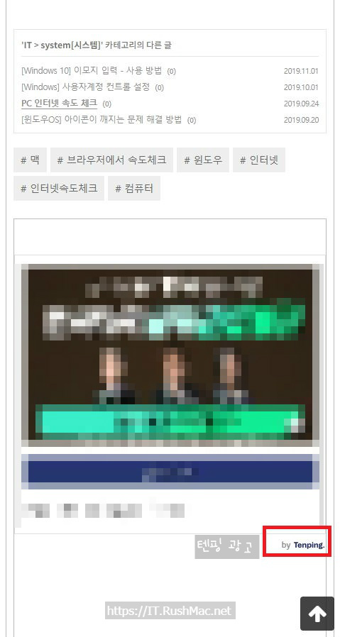 티스토리 플러그인 텐핑(모바일) 적용화면