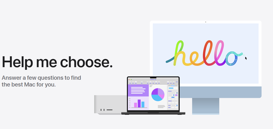 Apple의 'Help Me Choose' 웹사이트는 당신이 원하는 완벽한 Mac을 찾을 수 있도록 도와주는 훌륭한 도구입니다. 이 웹사이트는 몇 가지 간단한 질문을 통해 사용자 맞춤형 추천을 제공합니다. 시작해 볼까요?
