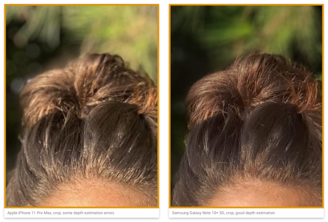 합성 된 보케 효과는 피험자의 머리카락 주변의 깊이 추정 오류로 인해 최고의 안드로이드 폰 제조사만큼 좋지 않은 것으로 간주되었습니다.