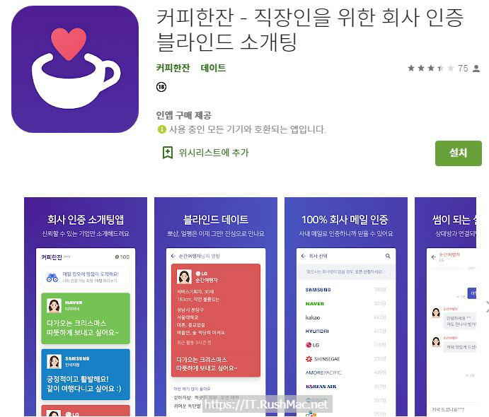 커피한잔 - 직장인을 위한 회사 인증 블라인드 소개팅 소개