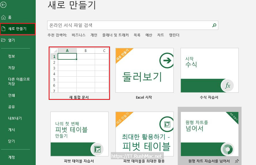 - 엑셀 프로그램 실행 후 [새로만들기] -> [새 통합문서] 오픈 합니다.