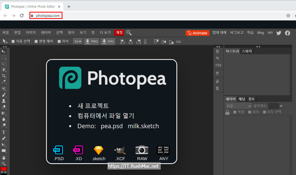 웹용 무료 온라인 포토피아(photopea) - 고급 이미지 편집기