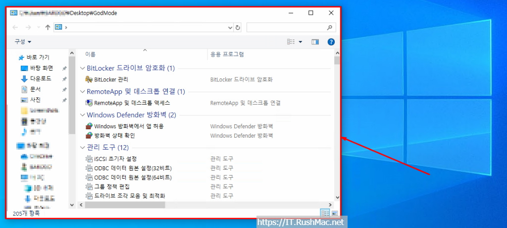 윈도우10에서 제어판 확장 버전 기능으로, 제어판을 사용하지 않고도 편리하고 빠르게 모든 작업관리를 할 수 있는 갓모드(GodMode) 기능 입니다.