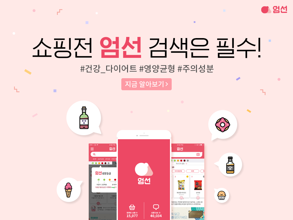 식품 주의성분을 한눈에 보기 쉽게 제공하는 ‘엄선‘이라는 어플을 만들었습니다.
