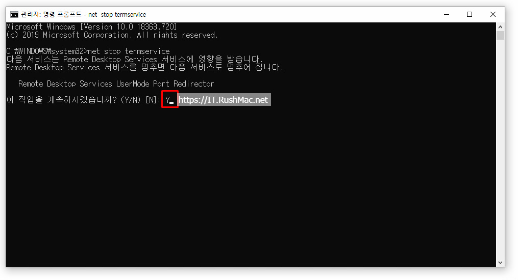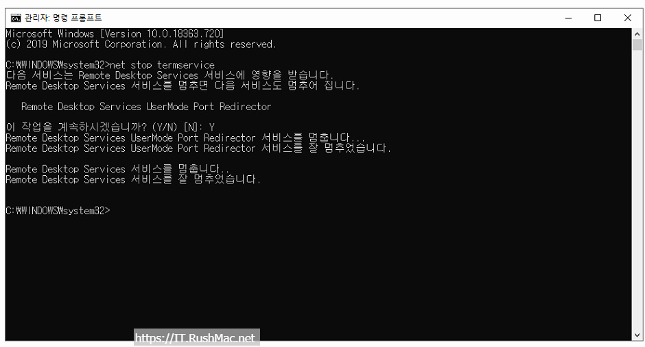 - 명령프롬프트에서 명령어(net stop termservice) 실행 하기