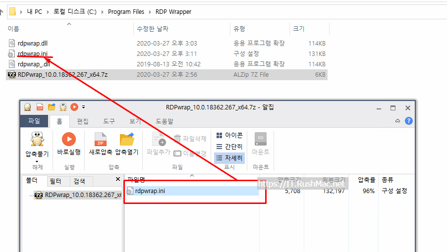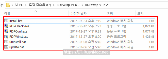 - 위에 첨부한 압축 파일 해제 후 경로(C:\Program Files\RDP Wrapper)로 덮어쓰기 합니다.