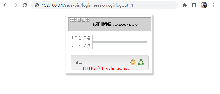 1. 아이피타임 공유기 설정페이지 로그인 접속 하시면 됩니다.