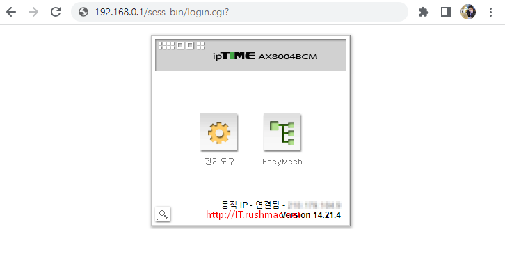1. 아이피타임 공유기 설정페이지 로그인 접속 하시면 됩니다.