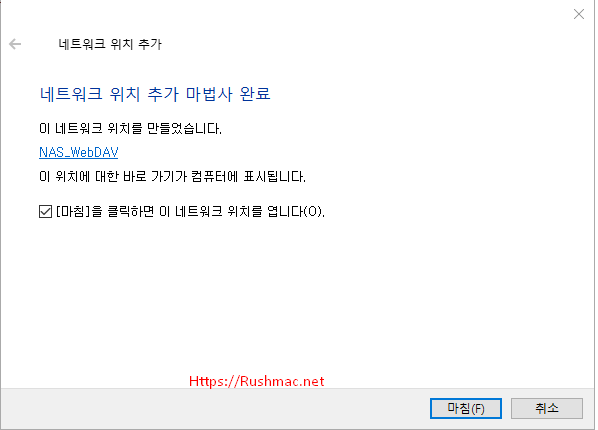 - 네트워크 위치 추가 마법사 완료으로 시놀로지 WebDAV 연결 성공 입니다.