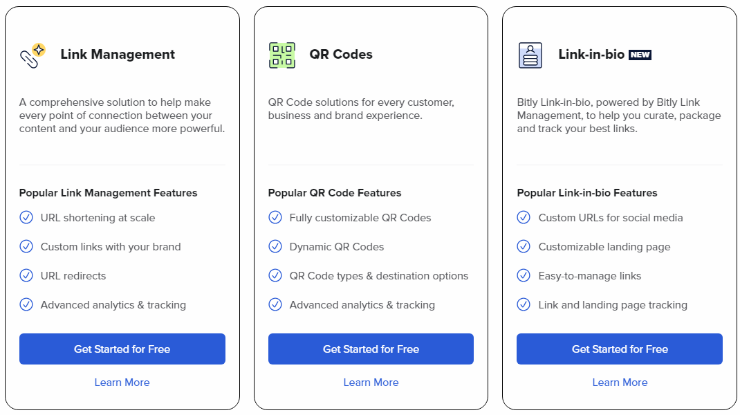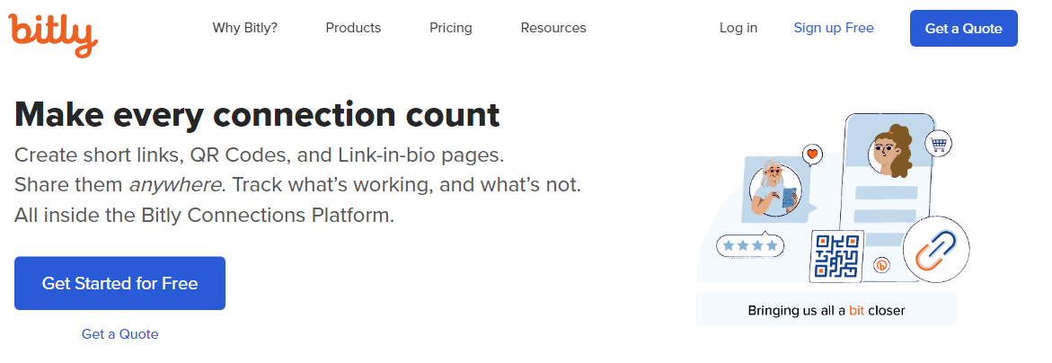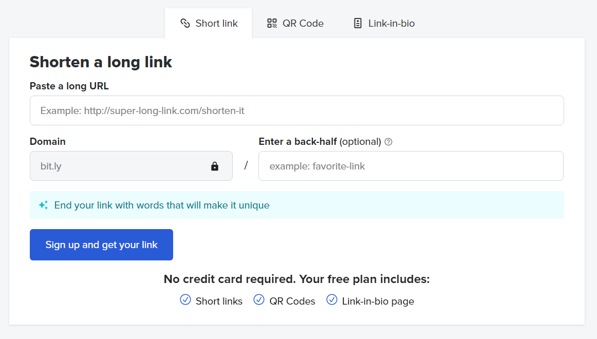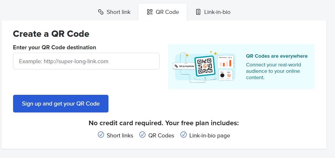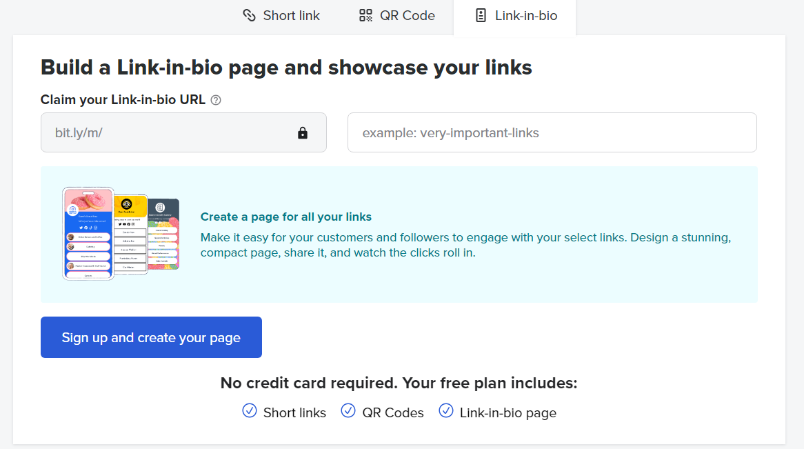 짧은 링크, QR코드 및 Link-in-bio 페이지를 만들 수 있습니다.