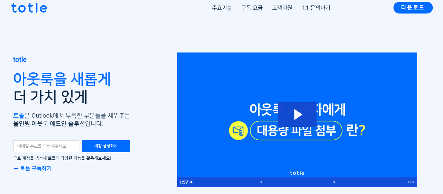 저는 아웃룩 사용 시점에서 대용량 첨부 시 안 되어 그 때 당시에 토틀을 알게 되어, 무료로 이용 해서 만족하고 잘 사용하고 있습니다.