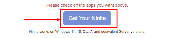 3. 하단에 "Get Your Ninite" 버튼을 클릭합니다.
