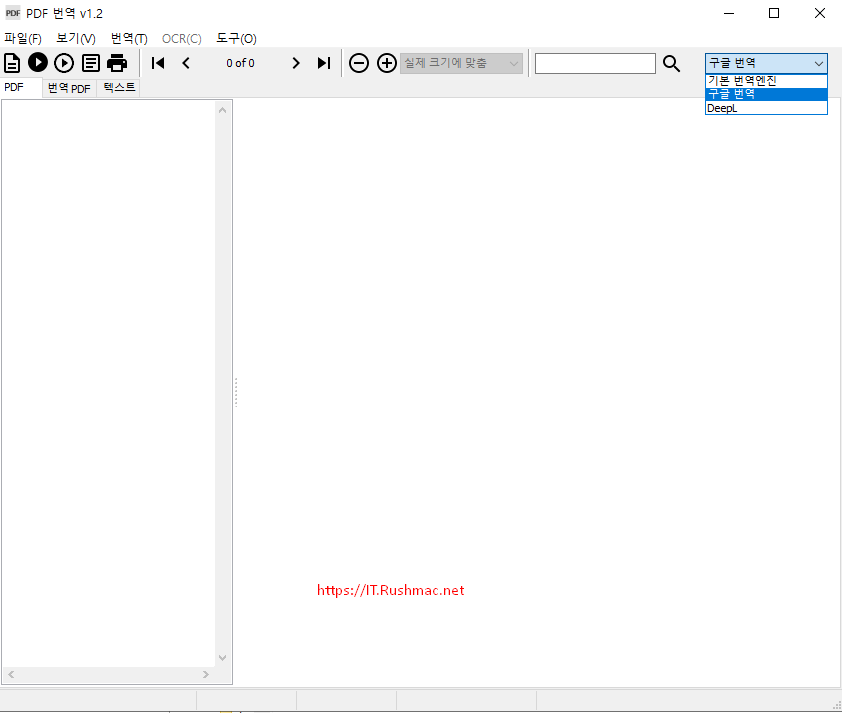 상단 우측에 번역할 엔진(기본 번역엔진, 구글 번역, DeepL) 옵션 선택하여, 가지고 있는 번역할 PDF파일 오픈 하셔서 번역 실행 하시면 레이아웃을 그대로 유지된 번역된 PDF로 표기 됩니다.