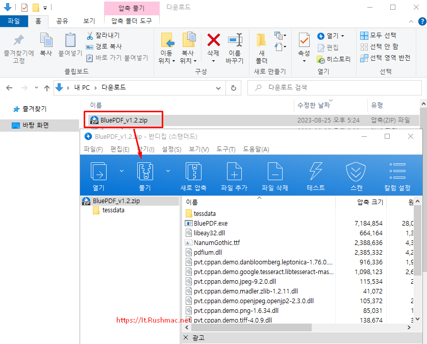 3. 저는 C:\BluePDF_v1.2 폴더로 압축 해제 하여, 실행파일 직접 실행 합니다.