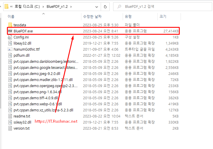 3. 저는 C:\BluePDF_v1.2 폴더로 압축 해제 하여, 실행파일 직접 실행 합니다.