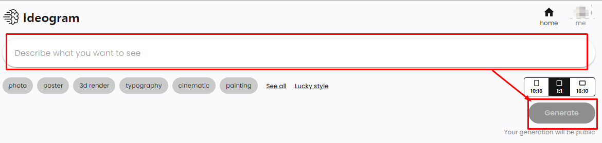 3. 계정 생성 완료 즉시 AI ideogram 페이지 이동 합니다.