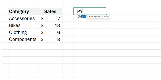 사용자가 수식, 차트, 피벗 테이블과 같은 친숙한 Excel 도구를 사용하여 데이터를 분석하고 이해 합니다. Python도 기본적으로 Excel 그리드에 직접 통합 됩니다.python코드를 Excel셀에 직접 입력할 수 있는 새로운 PY 함수를 사용 가능합니다.