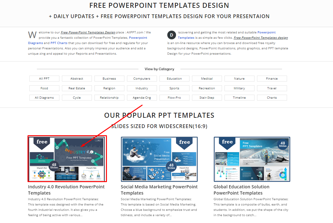 1. PPT템플릿 받을 수 있는 공식 사이트 접속 합니다.(https://allppt.com/)