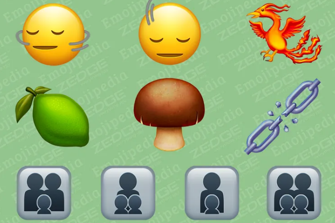 기사내용(https://www.theverge.com/2023/9/14/23874429/emoji-15-1-head-shakes-phoenix-lime)