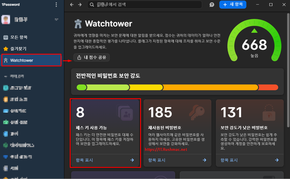 저는 1Password 유료 구독으로 사용 중이고, 현재 업그레이드하여 다음과 같이 확인할 수 있습니다.