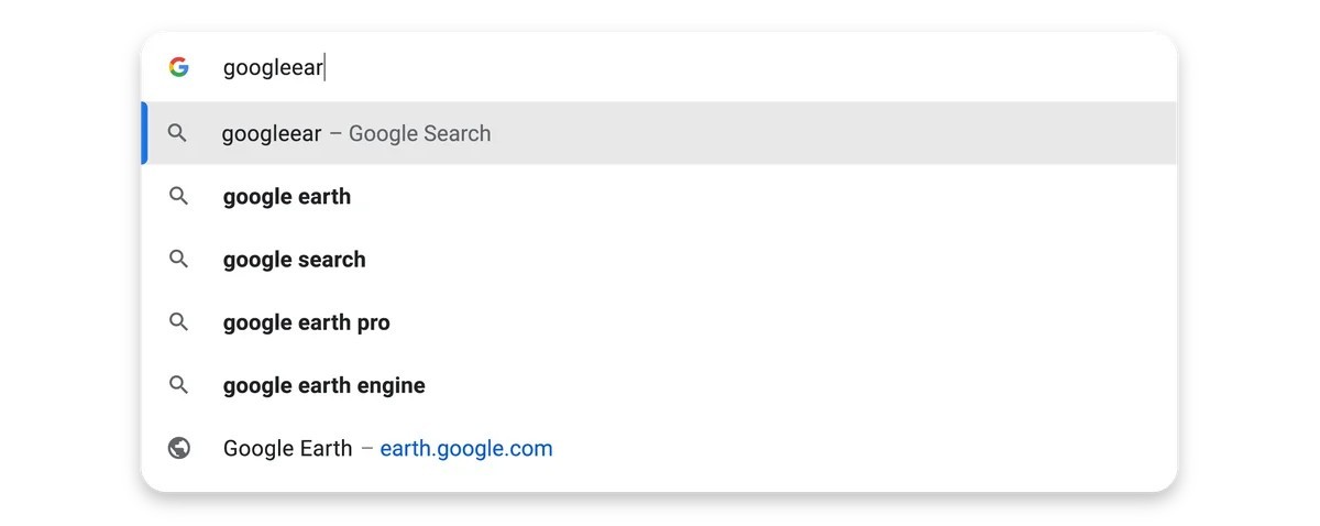 친구로부터 인기 있는 웹사이트에 대해 들어봤지만, 직접 방문한 적이 없으신가요? 이제 Chrome의 새로운 기능은 사용자가 해당 사이트에 가본 적이 없거나, URL을 잘못 입력한 경우에도 이러한 인기 사이트를 추천해 줍니다. 예를 들어 누군가 'Google 어스'를 언급하면 다음에 Chrome 주소입력창에 입력할 때 드롭다운에 해당 사이트가 추천됩니다.