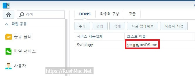 예시) XXX.myDS.me. 또는 XXX.synology.me.