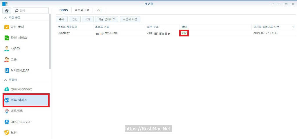 예시) XXX.myDS.me. 또는 XXX.synology.me.
