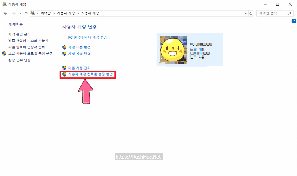 - 사용자 계정 컨트롤 설정 변경 클릭합니다.