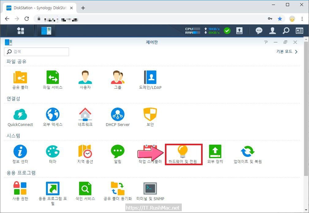시놀로지(synology) NAS HDD대기 기능 사용방법