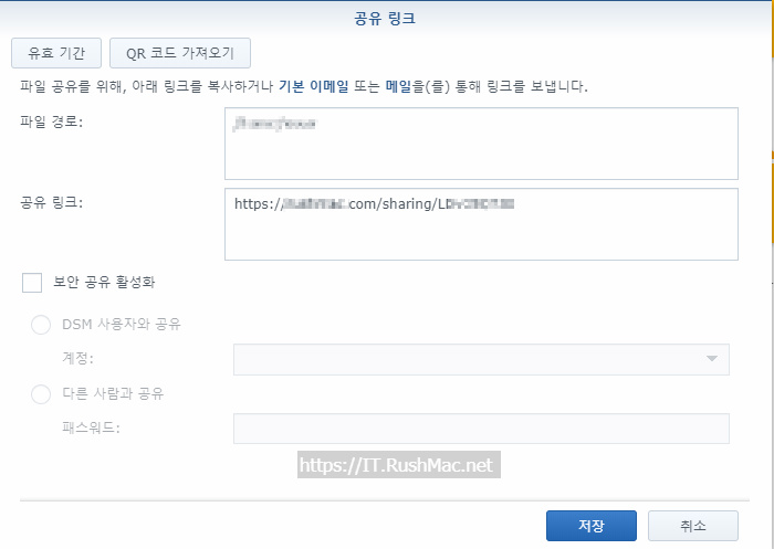 [시놀로지] 공유 시 기본URL(gofile.me) 변경하는 방법