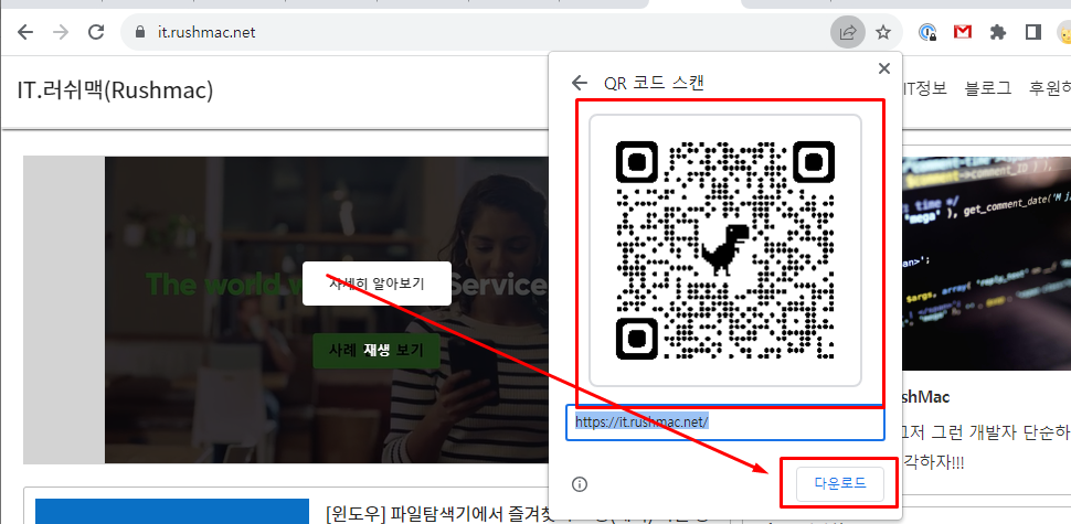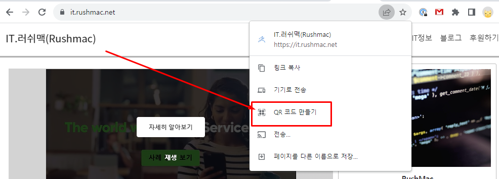 크롬 웹사이트는 쉽게 인터넷 주소(URL)대해 프로그램 통하지 않고 크롬 브라우저에서 쉽게 QR코드로 변환 작업 및 전달 할 수 있습니다.
