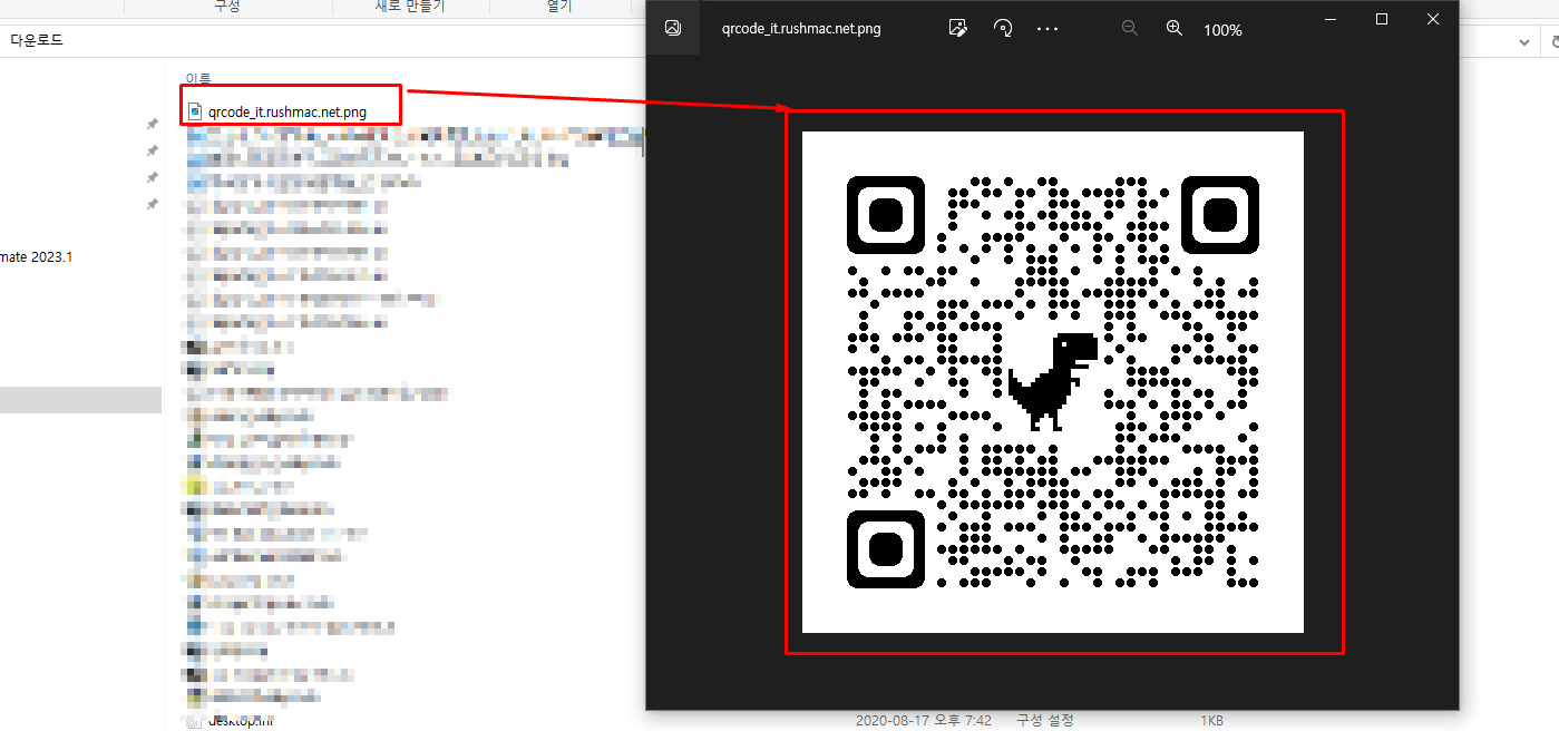 5. 이미지 파일로 다운로드 됩니다.해당 이미지 미리 보기 시 다음과 같이 QR코드 이미지로 표기 됩니다.